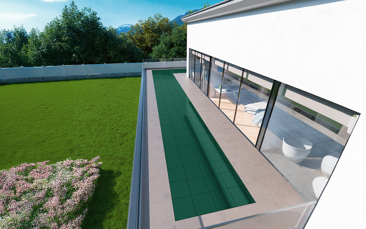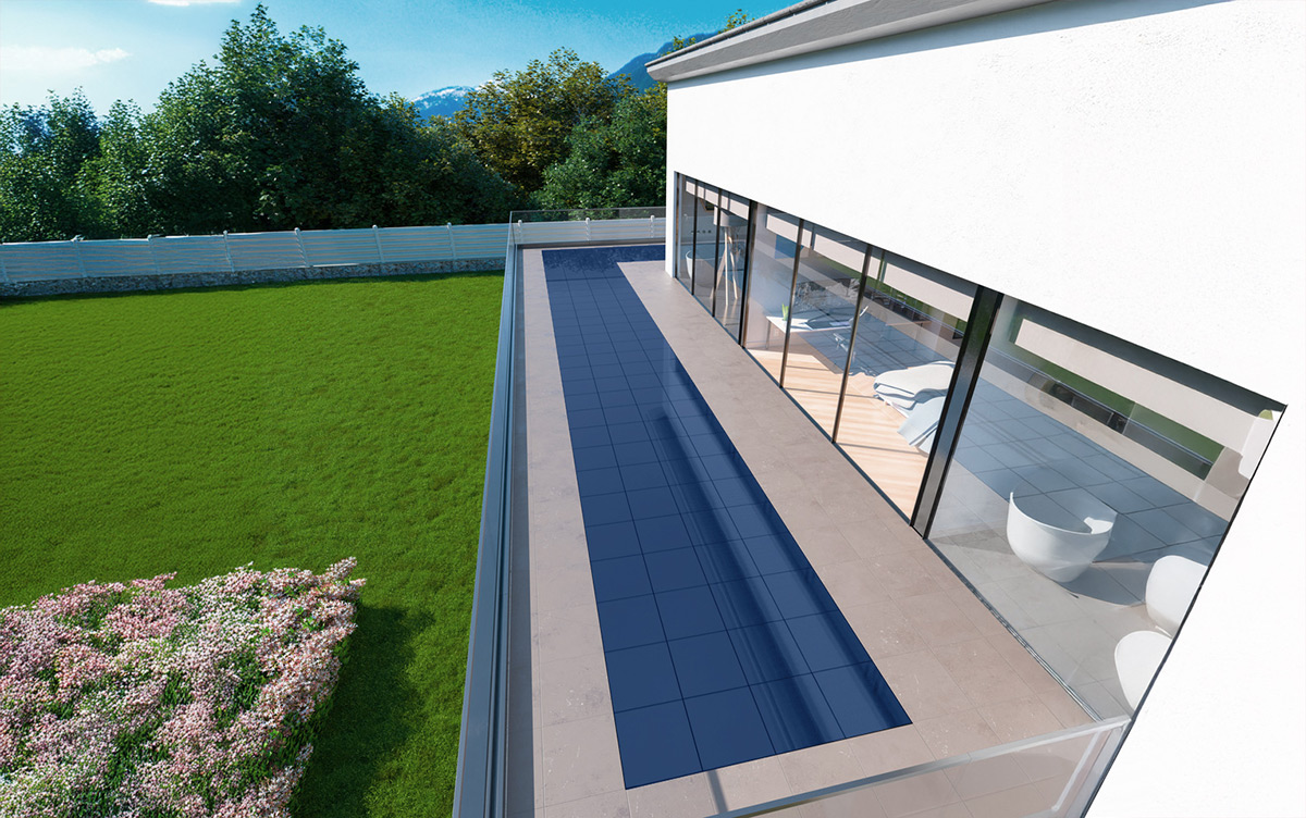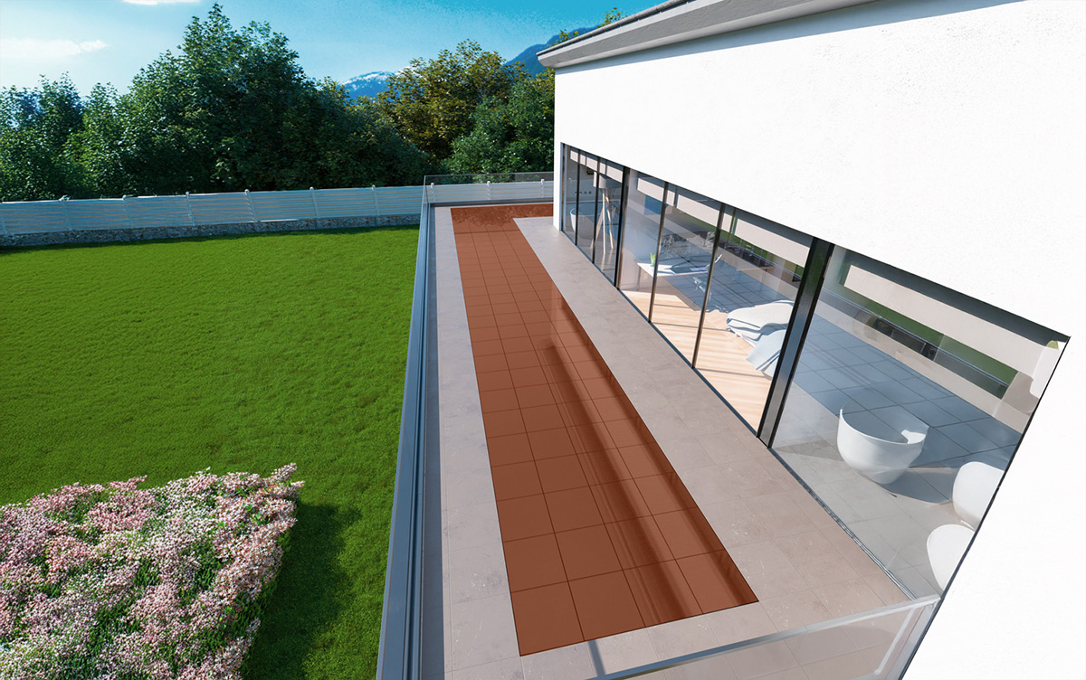 La versione calpestabile, installabile con posa flottante, è ideale per balconi, terrazzi, attici, tetti piani e camminamenti.